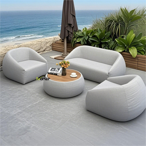 3. Sofá estofado para exterior: A experiência de conforto de uma pessoa preguiçosa, com almofadas macias e grossas e materiais de secagem rápida, tornando-o confortável para deitar ou sentar.